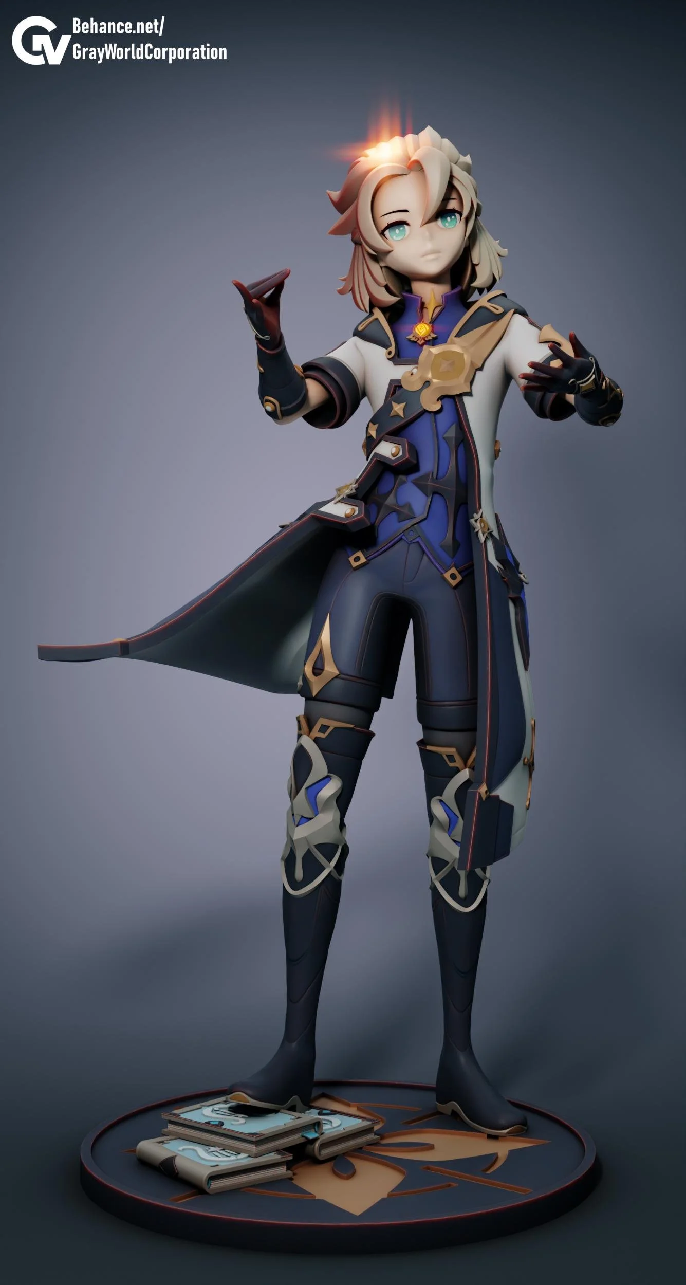 3D Printed Figure of Albedo from Genshin Impact. The creator if this model is Gray World Corp, I am a licensed seller for this model, and you can file her STL files here https://cults3d.com/en/users/GrayWorldCorp/3d-models