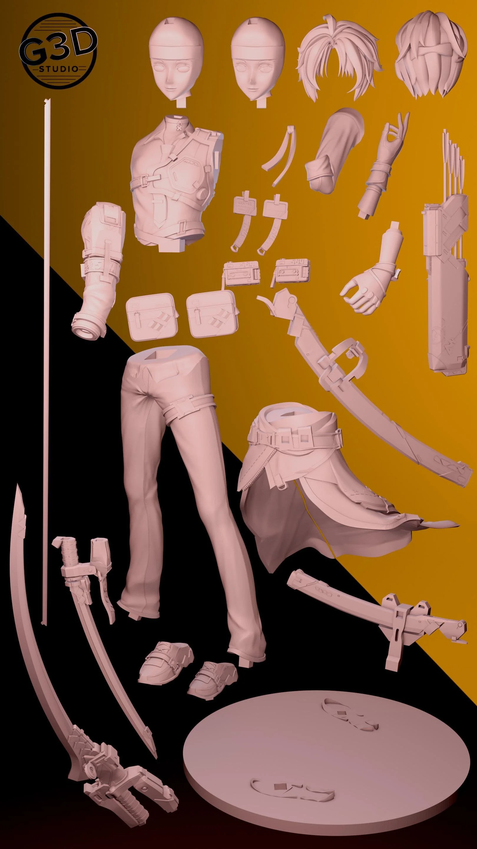 3D Printed Figure of Asaba Harumasa from Zenless Zone Zero. The creator if this model is G3DStudio, I am a licensed seller for this artist, and you can file her STL files here https://cults3d.com/en/users/G3DStudio/3d-models