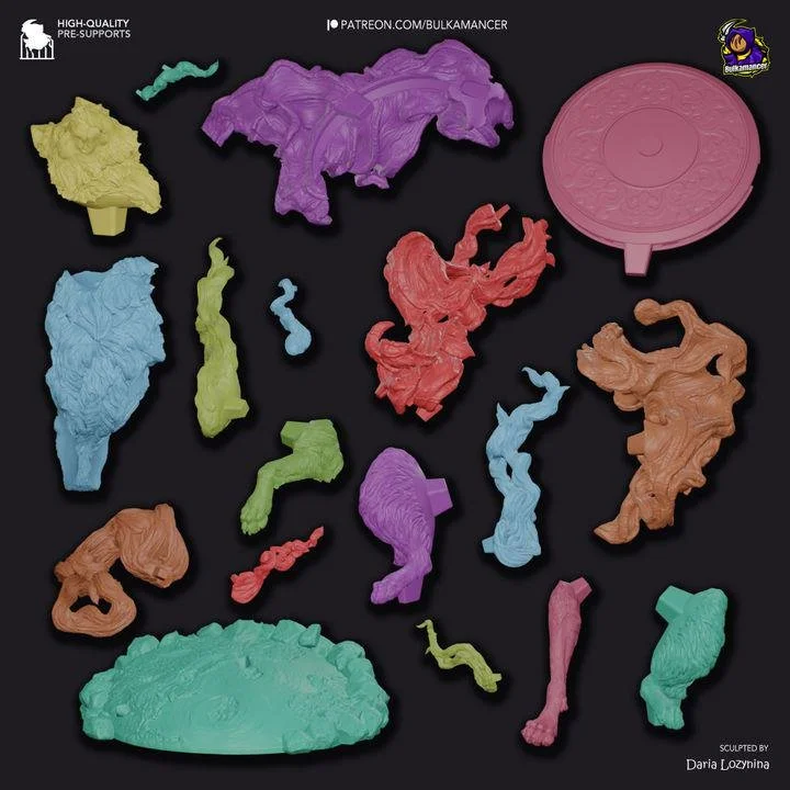 This product and all imaged show are fan created, ether made by the modeler or myself. I AM NOT the owner and not endorsed by the IP of any character's shown. None of these items are licensed or official work of the stated IP. I am just offering my service to print these models, for you to paint or paint them for you. I will do all supporting, quality checks on every parts before printing and clean up parts after printing. If sanding is requested parts will be sanded and washed to removed resin dust. Then if a model is painted I will prime the model and paint it before varnishing to protect the model. These are fun fan art creations made by fans.