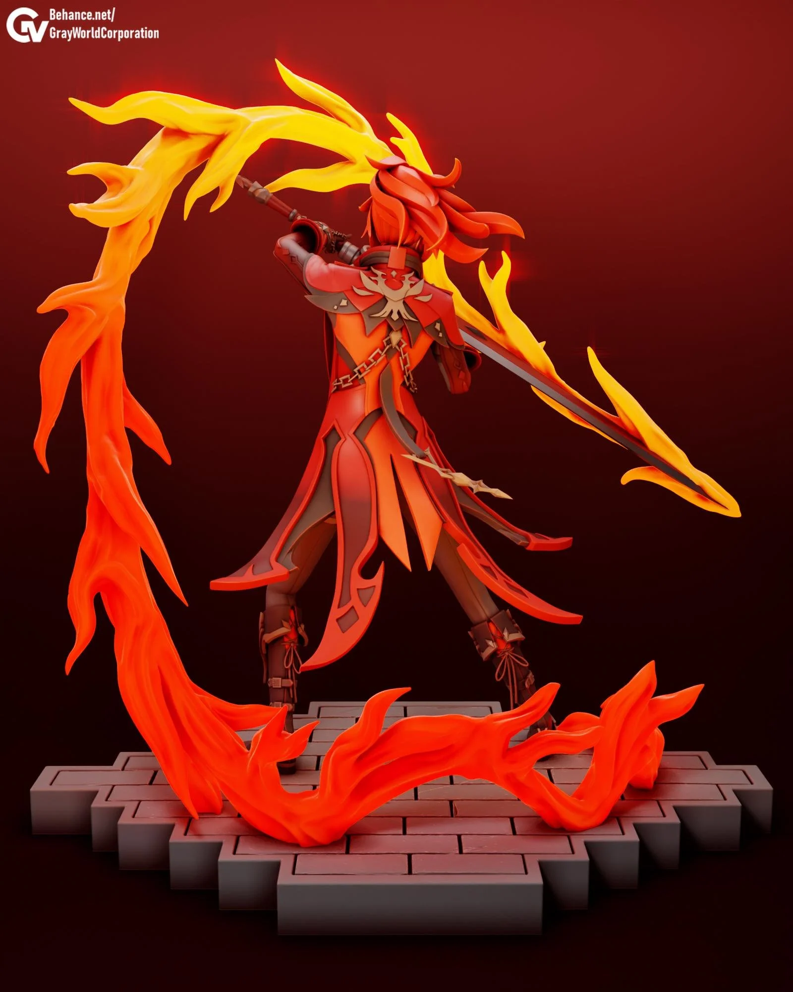 3D Printed Figure of Diluc from Genshin Impact. The creator if this model is Gray World Corp, I ama licensed seller for this model, and you can file her STL files here https://cults3d.com/en/users/GrayWorldCorp/3d-models