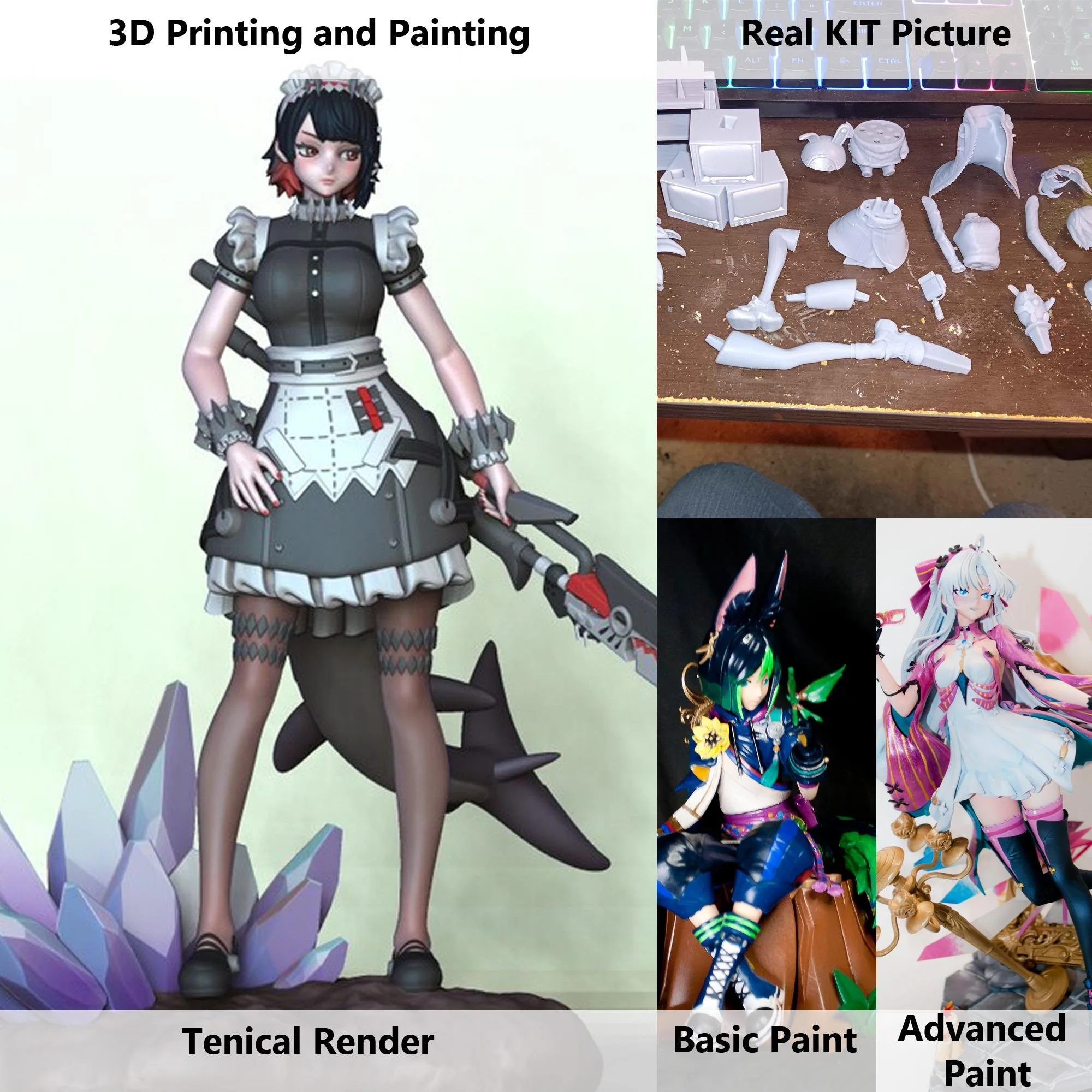 3D Printed 7 Inch Figure of Ellen Joe from Zenless Zone Zero. The creator if this model is TFigure, I am a licensed seller for this artist, and you can file her STL files here https://cults3d.com/en/users/TFigure/3d-models