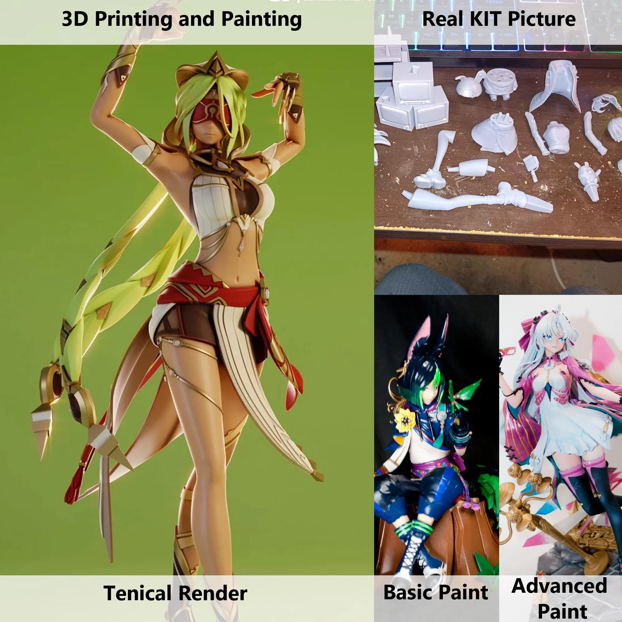 This product and all imaged show are fan created, ether made by the modeler or myself. I AM NOT the owner and not endorsed by the IP of any character's shown. None of these items are licensed or official work of the stated IP. I am just offering my service to print these models, for you to paint or paint them for you. I take on the risk of resin 3D printing so you can get all the fan created models you would miss out on without a 3D printer. No risk of contact with uncurled resin, no printing fumes and if you want me to sand the model you do not need to expose yourself to resin dust. I support and run multiple quality checks on all models I print. I mix a blend of resin for the best results and clean all parts. If you request sanding I will remove supports and sand the model so you don’t have resin dust in your home. If you want more than a DIY kit then I can paint it for you. I will prime the model and hand paint it. Finally I apply a protective coat of varnish to preserve and protect the paint.