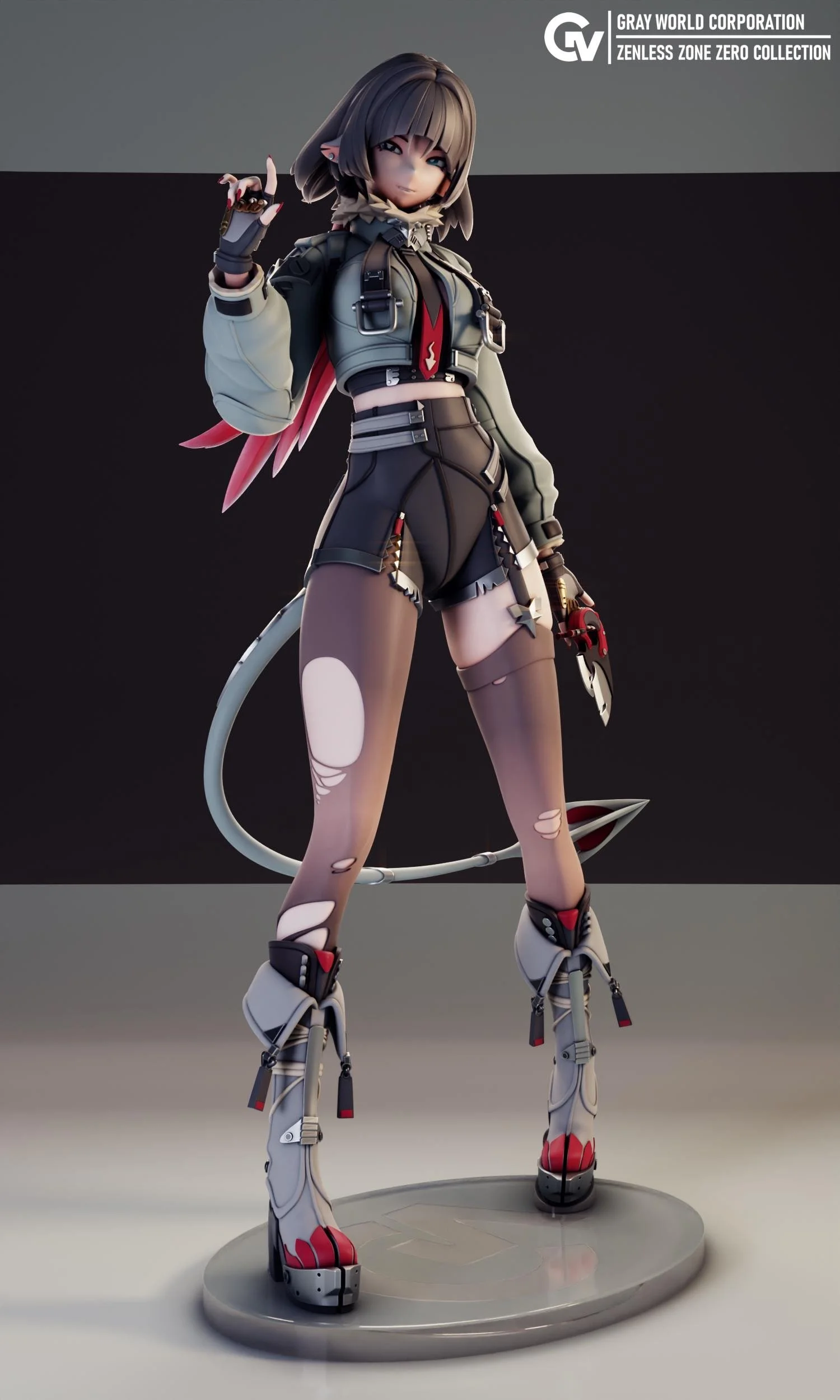 3D Printed 7 inch Figure Jane Doe from Zenless Zone Zero. The creator if this model is Gray World Corp, I am a licensed seller for this artist, and you can file her STL files here https://cults3d.com/en/users/GrayWorldCorp/3d-models