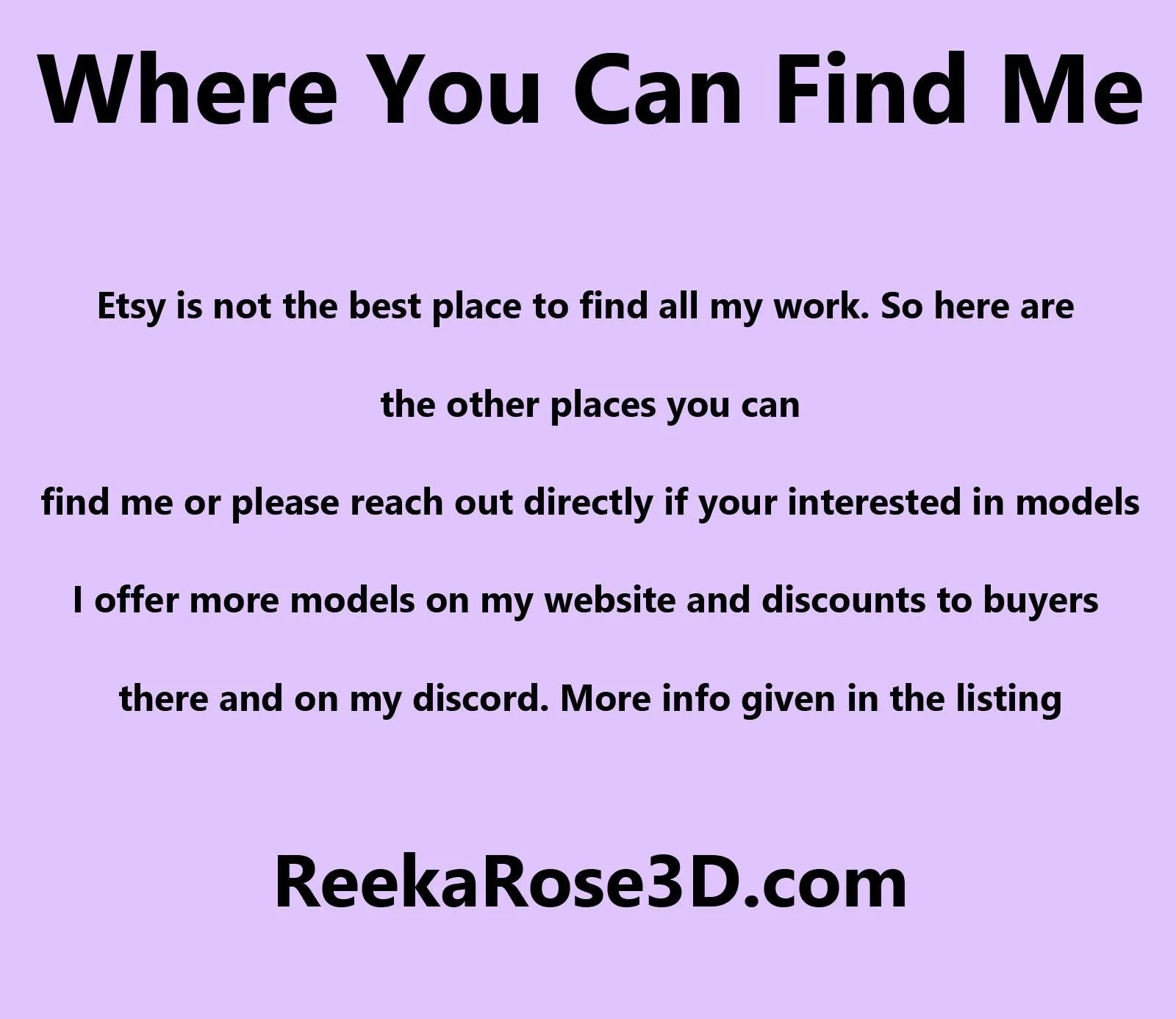 Just lunched my own website, more model, less fees! Visit ReekaRose3D.com