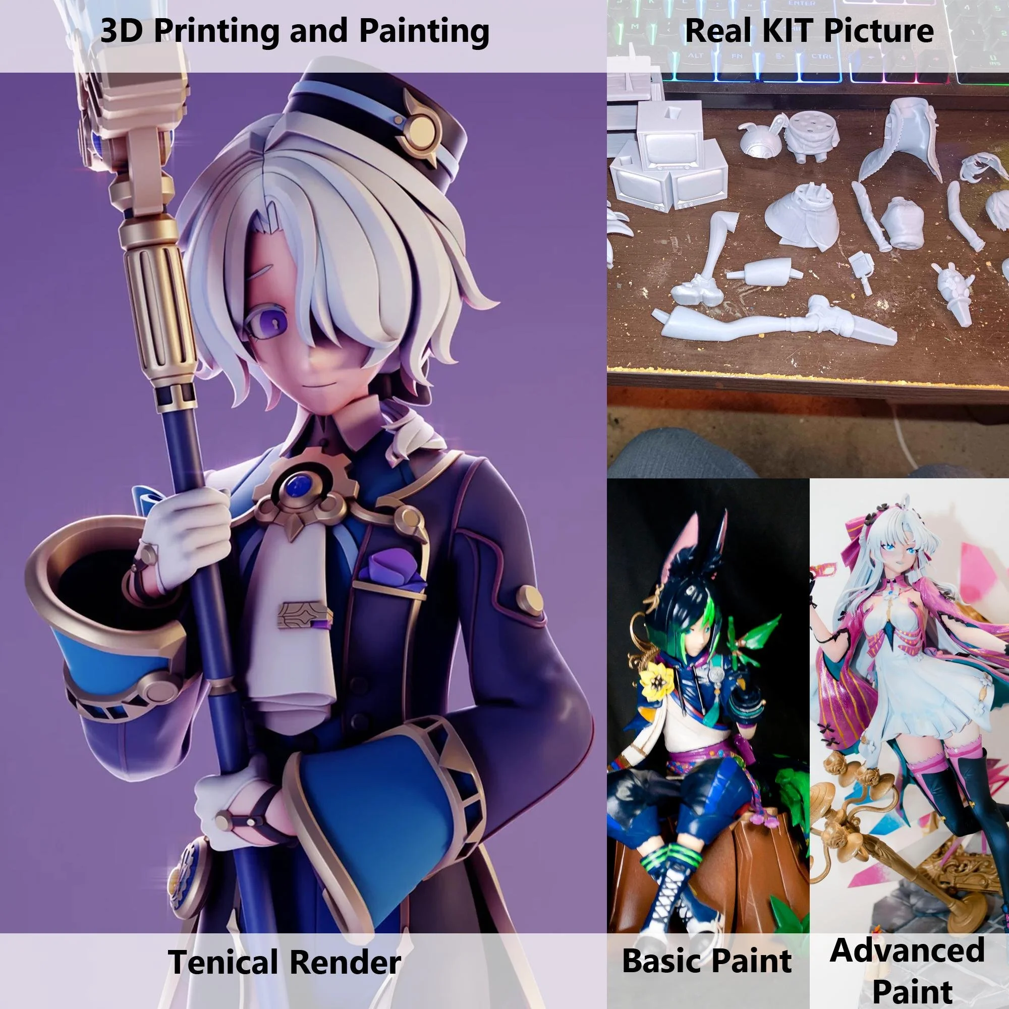 This product and all imaged show are fan created, ether made by the modeler or myself. I AM NOT the owner and not endorsed by the IP of any character's shown. None of these items are licensed or official work of the stated IP. I am just offering my service to print these models, for you to paint or paint them for you. I take on the risk of resin 3D printing so you can get all the fan created models you would miss out on without a 3D printer. No risk of contact with uncurled resin, no printing fumes and if you want me to sand the model you do not need to expose yourself to resin dust. I support and run multiple quality checks on all models I print. I mix a blend of resin for the best results and clean all parts. If you request sanding I will remove supports and sand the model so you don’t have resin dust in your home. If you want more than a DIY kit then I can paint it for you. I will prime the model and hand paint it. Finally I apply a protective coat of varnish to preserve and protect the paint.
