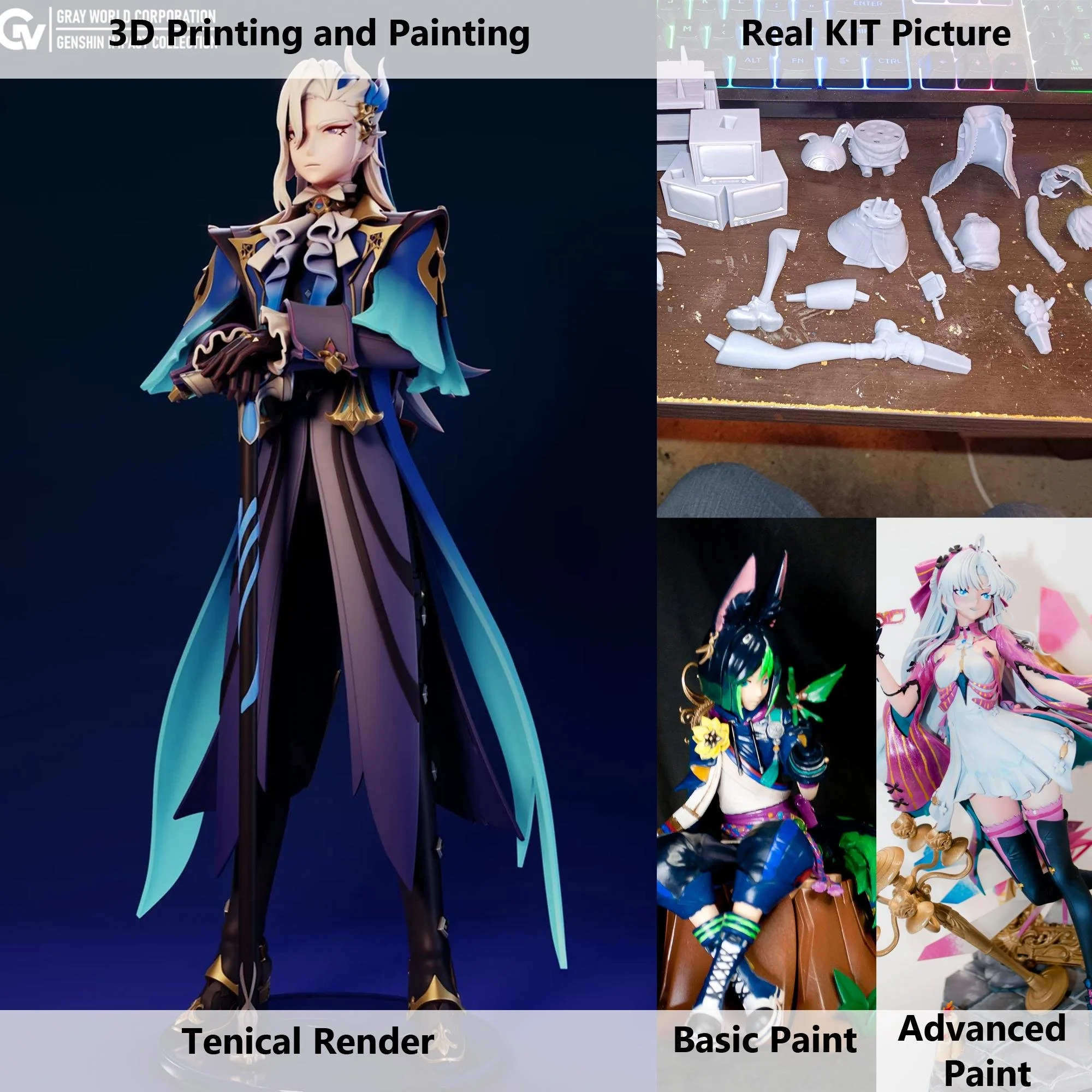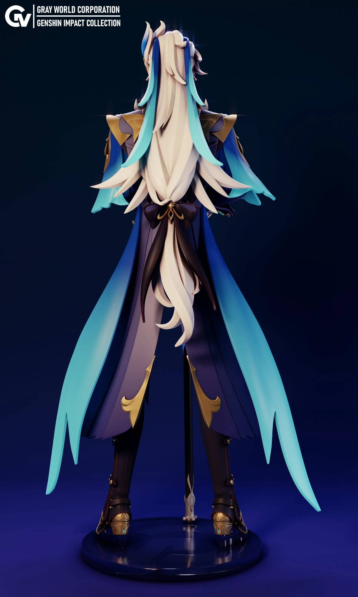 3D Printed 7 inch Figure of Neuvillette from Genshin Impact. The creator if this model is Gray World Corp, I am a licensed seller for this artist, and you can file her STL files here https://cults3d.com/en/users/GrayWorldCorp/3d-models