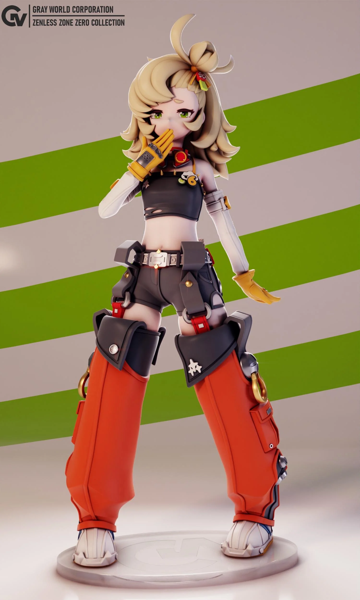 3D Printed Figure Piper Wheel from Zenless Zone Zero. The creator if this model is Gray World Corp, I am a licensed seller for this model, and you can file her STL files here https://cults3d.com/en/users/GrayWorldCorp/3d-models
