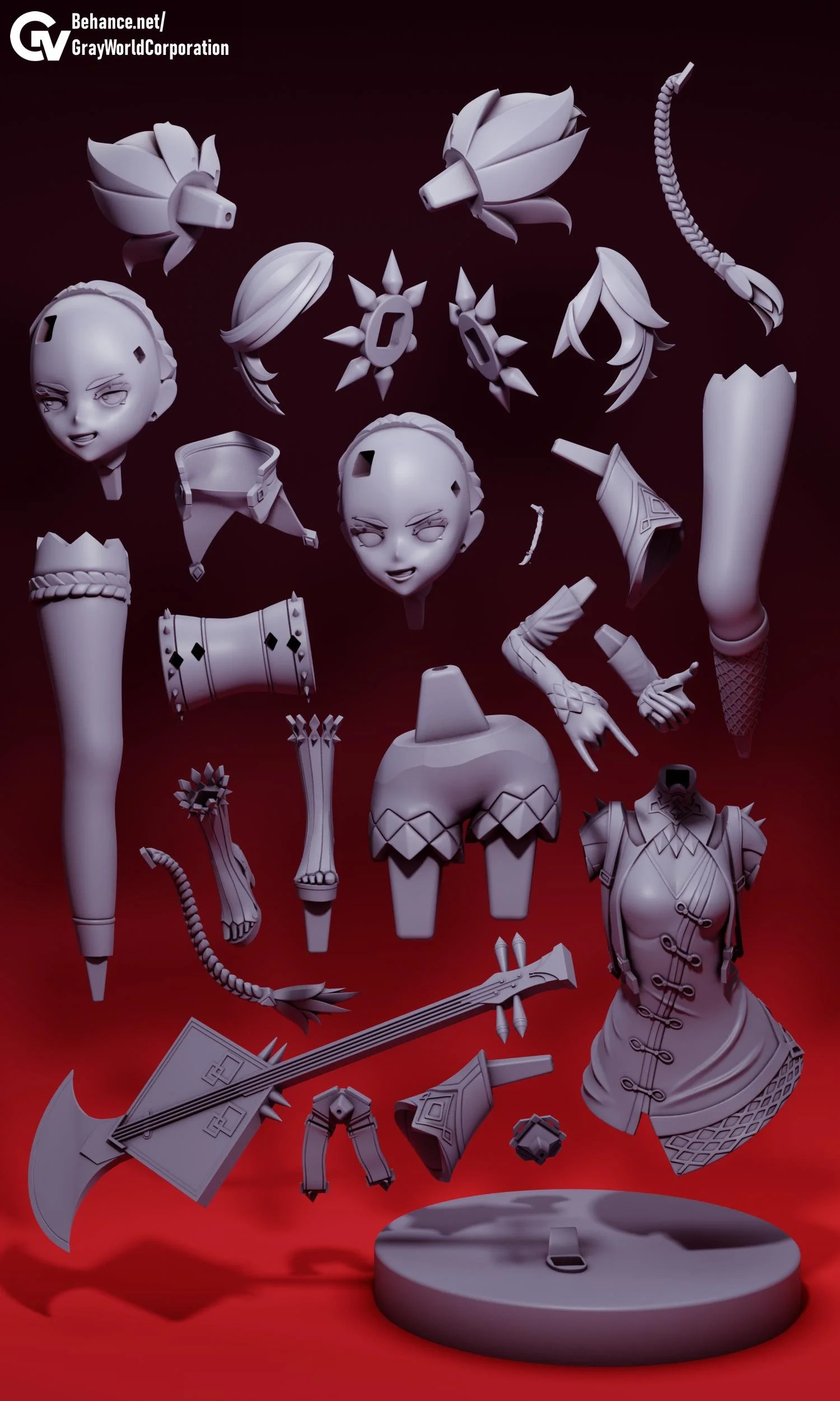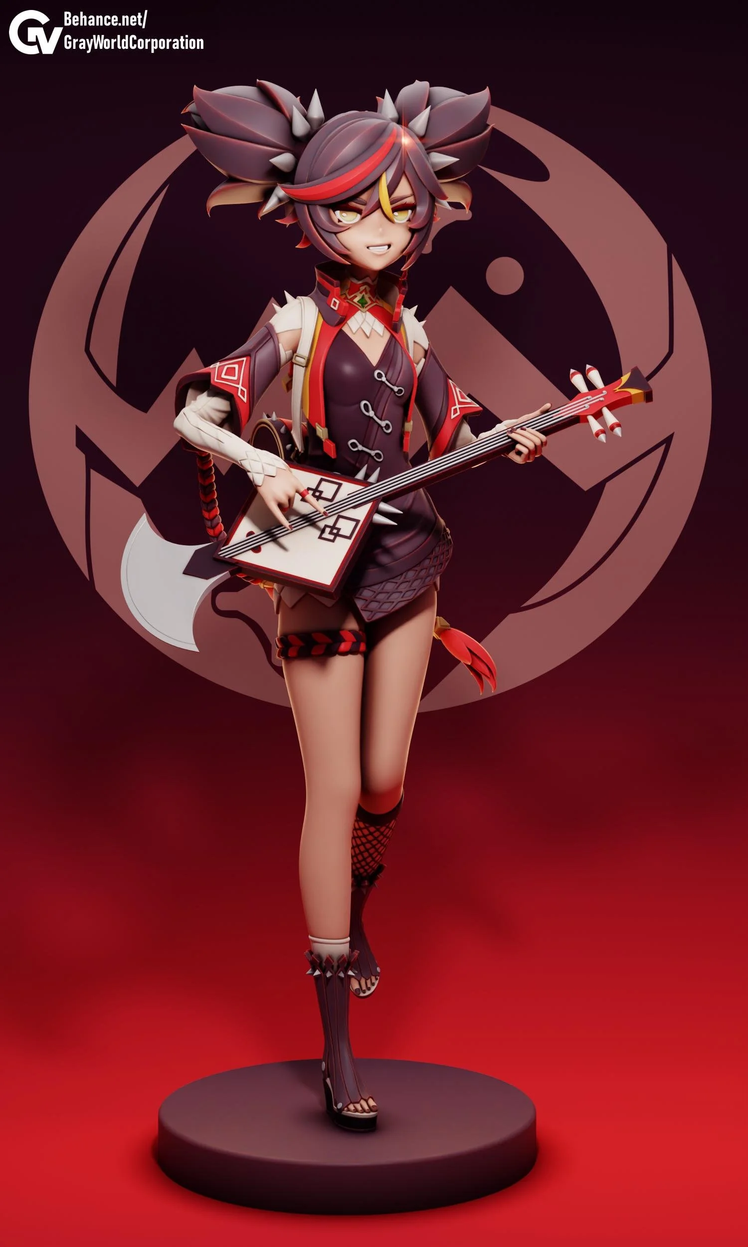 3D Printed Figure of Xinyan from Genshin Impact. The creator if this model is Gray World Corp, I am a licensed seller for this artist, and you can file her STL files here https://cults3d.com/en/users/GrayWorldCorp/3d-models