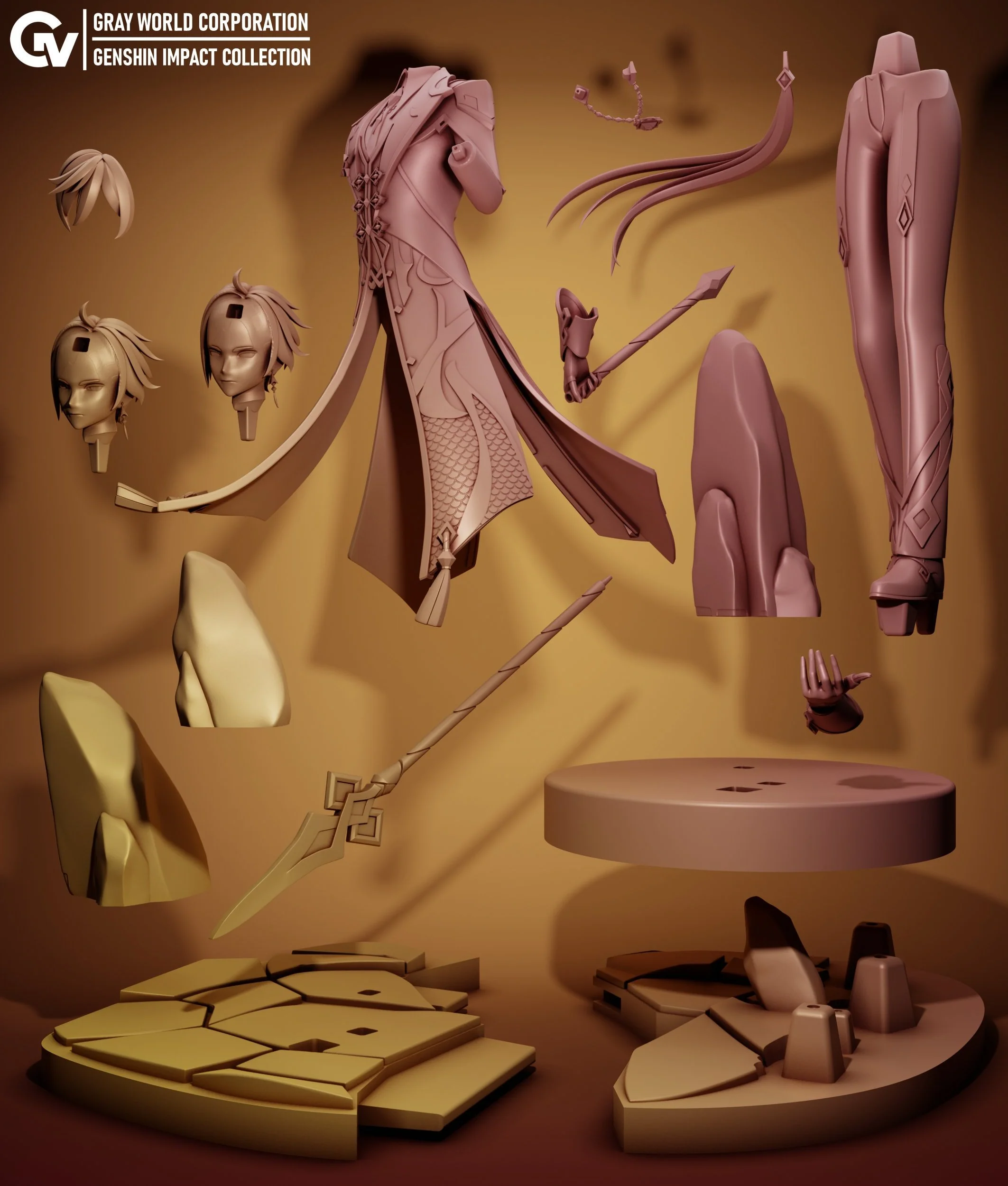 3D Printed Figure of Zhongli from Genshin Impact. The creator if this model is Gray World Corp, I am a licensed seller for this artist, and you can file her STL files here https://cults3d.com/en/users/GrayWorldCorp/3d-models